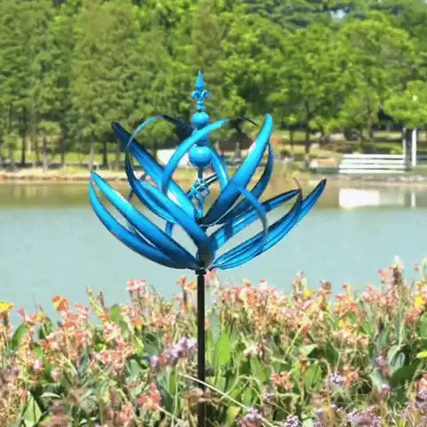 【 Lovely Blue Finish 】Add a touch of color and elegance to your garden with this metal wind spinner that has a lovely blue finish that shines in the sun. It has a stunning lotus design that rotates smoothly in any direction with 360 degrees of rotation, captivating your eyes.