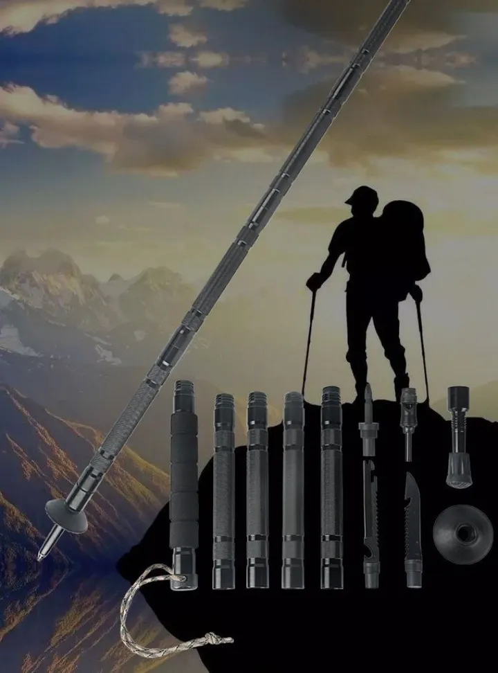 Perfect for outdoor enthusiasts, campers, and adventurers, this hiking stick combines versatility, reliability, and compact design — a must-have tool for your next expedition.